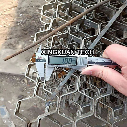 XINGKUAN TECH is defined as a unique hexagonal cellular mesh steel, made of flat bar which is designed to provide brilliant retention and reinforcement of thin wall refractories and fully complements dense hydraulic and chemically bonded refractories in resisting erosion. It acts as a surface framework to hold cement or refractory in position, and relieves stress in the lining’s upper crust, retarding erosion, corrosion, blistering and cracking.